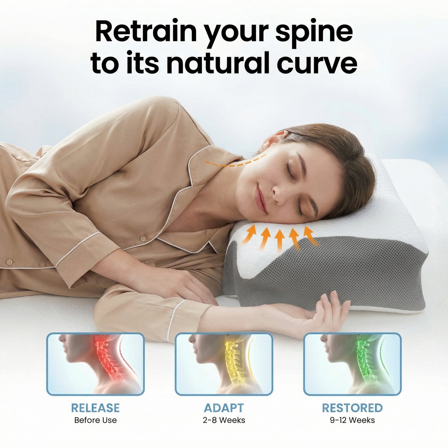Hours hunched over screens take a toll. Our contoured design works with your body night after night, gently encouraging your cervical spine back into proper alignment. Wake up standing taller, moving easier, and finally free from that forward-neck hunch.